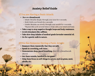 Navigate moments of anxiety with confidence using our Anxiety Relief Guide. This bonus provides practical strategies and calming techniques to help you manage stress and regain peace. Tips are also included to help you assist a friend who may be suffering from an attack.